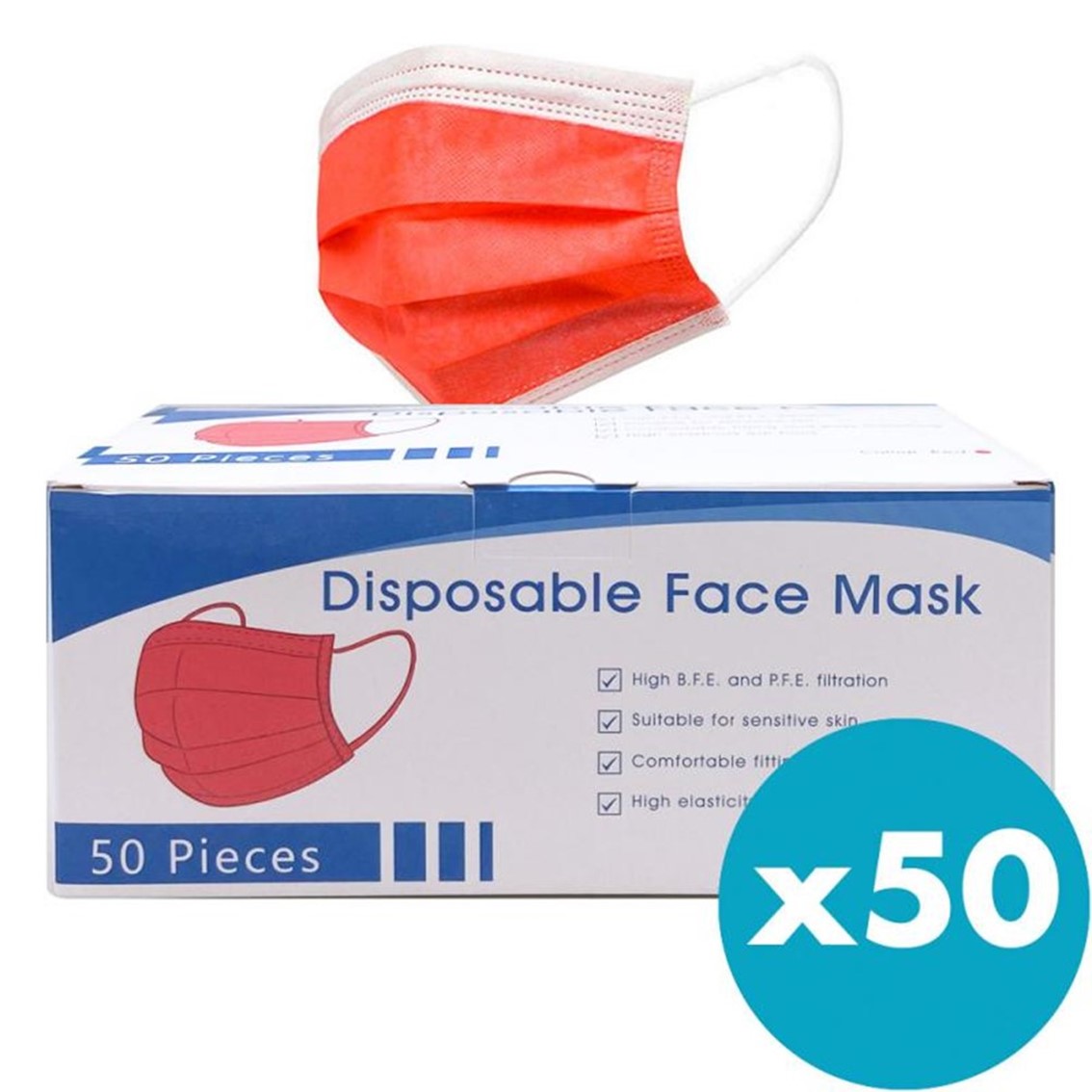 Caja mascarillas higienicas 50 unidades nr color roja